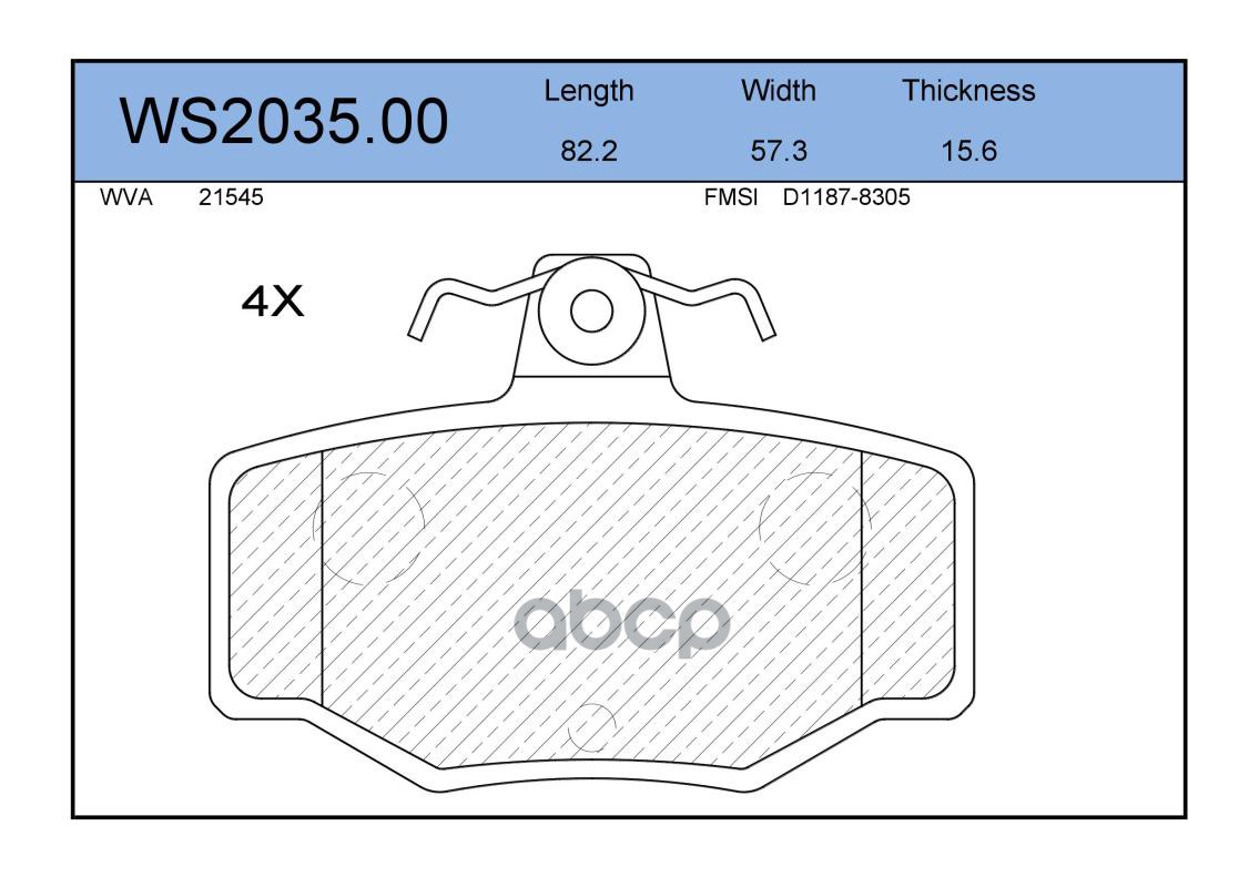Колодки тормозные дисковые | зад | NISSAN ALMERA II 2 >>, ALMERA TINO 2 >>, PRIMERA 199 - 22NISSAN ALMERA B17 211 >>, ALMERA II 2 >>, ALMERA TINO 2 >>, PRIMERA 199 - 22 WS2035.00
