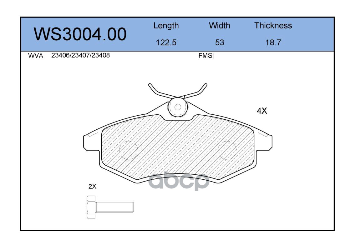Колодки тормозные дисковые | перед | RENAULT KANGOO (KC0/1_) 1.4 (KC0C, KC0H, KC0B, KC0M) 08.1997 - <=> RENAULT KANGOO Express (FC0/1_) 1.4 (FC0C, FC0B, FC0H, FC0M) 08.1997 - 06.2008 WS3003.04