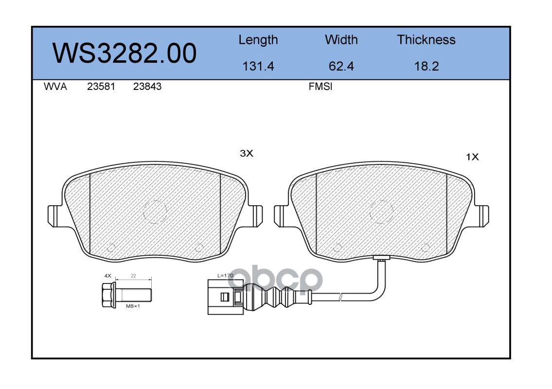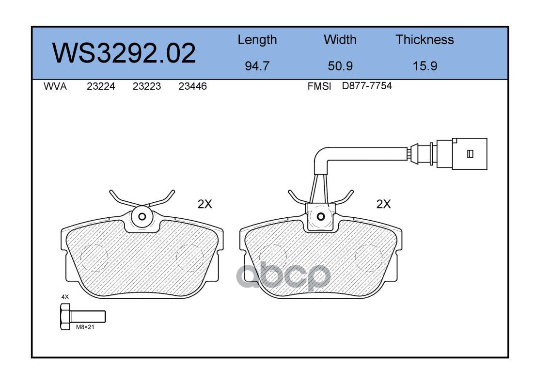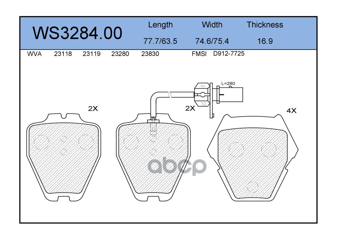 Колодки тормозные дисковые | перед | VW PASSAT (3B3) 1.8 T 20V 11.2000 - 05.2005 <=> VW PASSAT Variant (3B6) 1.9 TDI 11.2000 - 05.2005 WS3284.00
