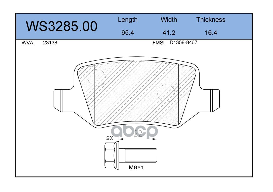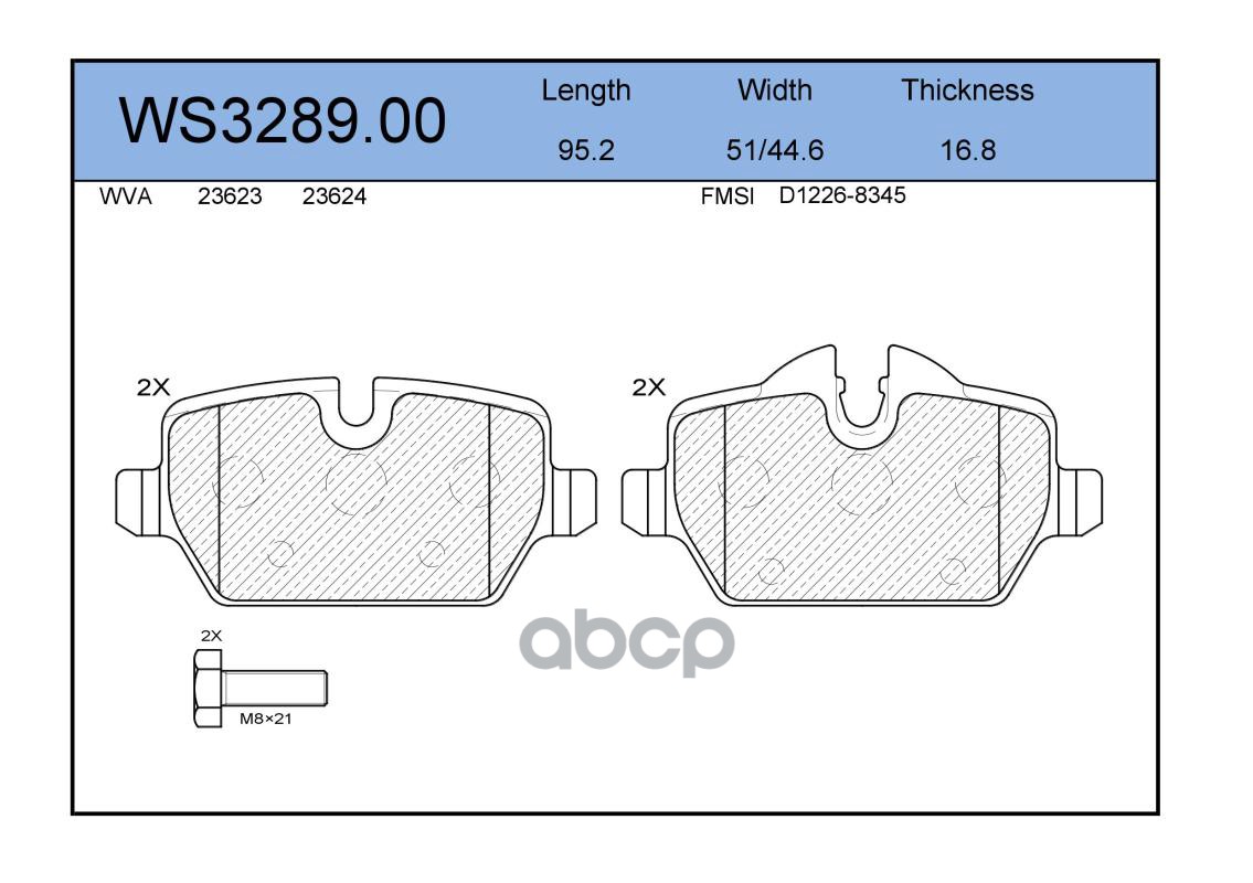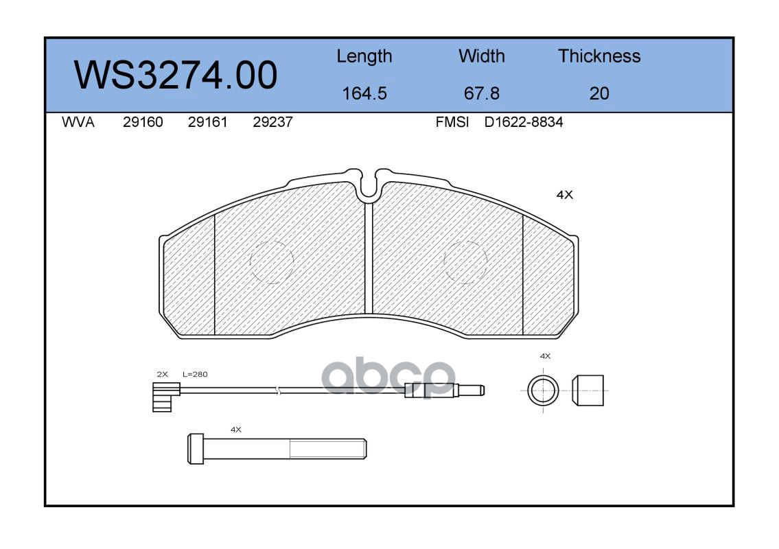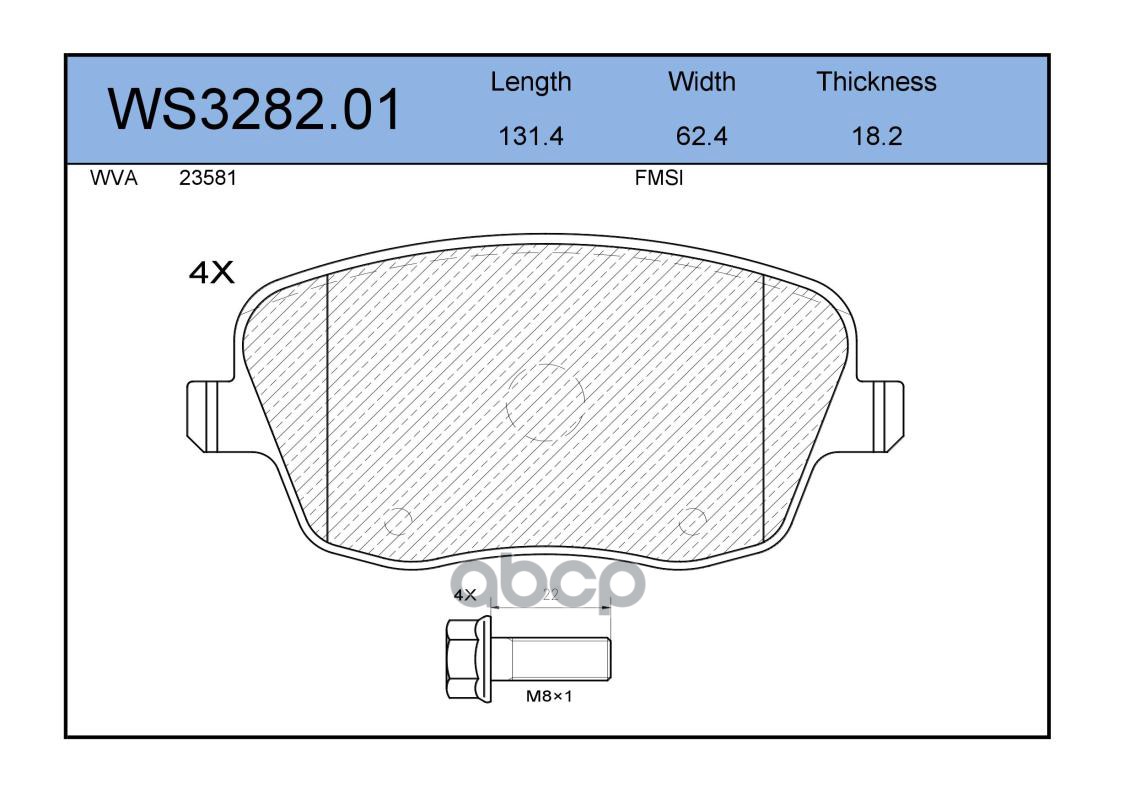 Колодки тормозные дисковые | перед | VW PASSAT (3B3) 1.8 T 20V 11.2000 - 05.2005 <=> VW PASSAT Variant (3B6) 1.9 TDI 11.2000 - 05.2005 WS3284.00