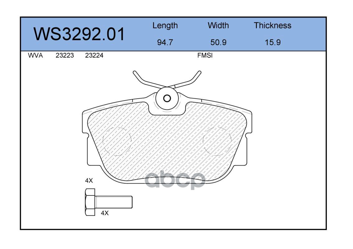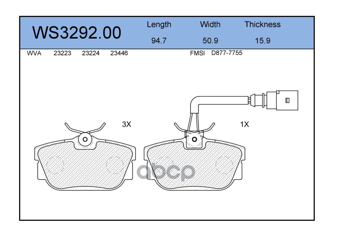 Колодки тормозные дисковые | зад | VW TRANSPORTER IV Platform/Chassis (70E, 70L, 70M, 7DE, 7DL, 7D 2.4 D 09.1990 - 04.1998 <=> VW TRANSPORTER IV Box (70A, 70H, 7DA, 7DH) 1.9 TD 10.1992 - 04.2003 WS3292.01