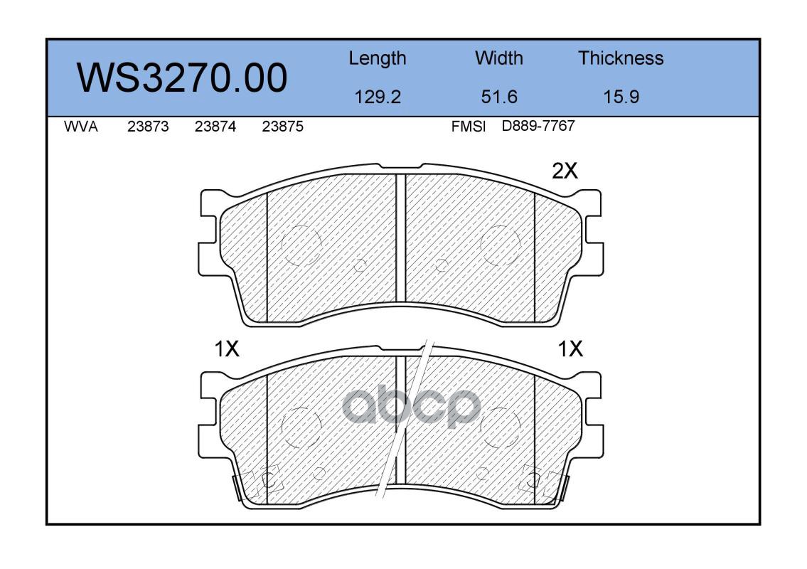 Колодки тормозные дисковые | перед | KIA SHUMA II Saloon (FB) 1.6 05.2001 - 05.2004 <=> KIA RIO Estate (DC) 1.5 16V 08.2000 - 02.2005 WS3270.00