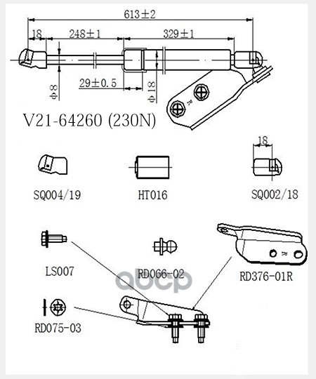 Амортизатор багажника Nissan J11E J11R 904504EA0A, 90450-4EA0A, 904504EA1A, 90450-4EA1A, V2164259