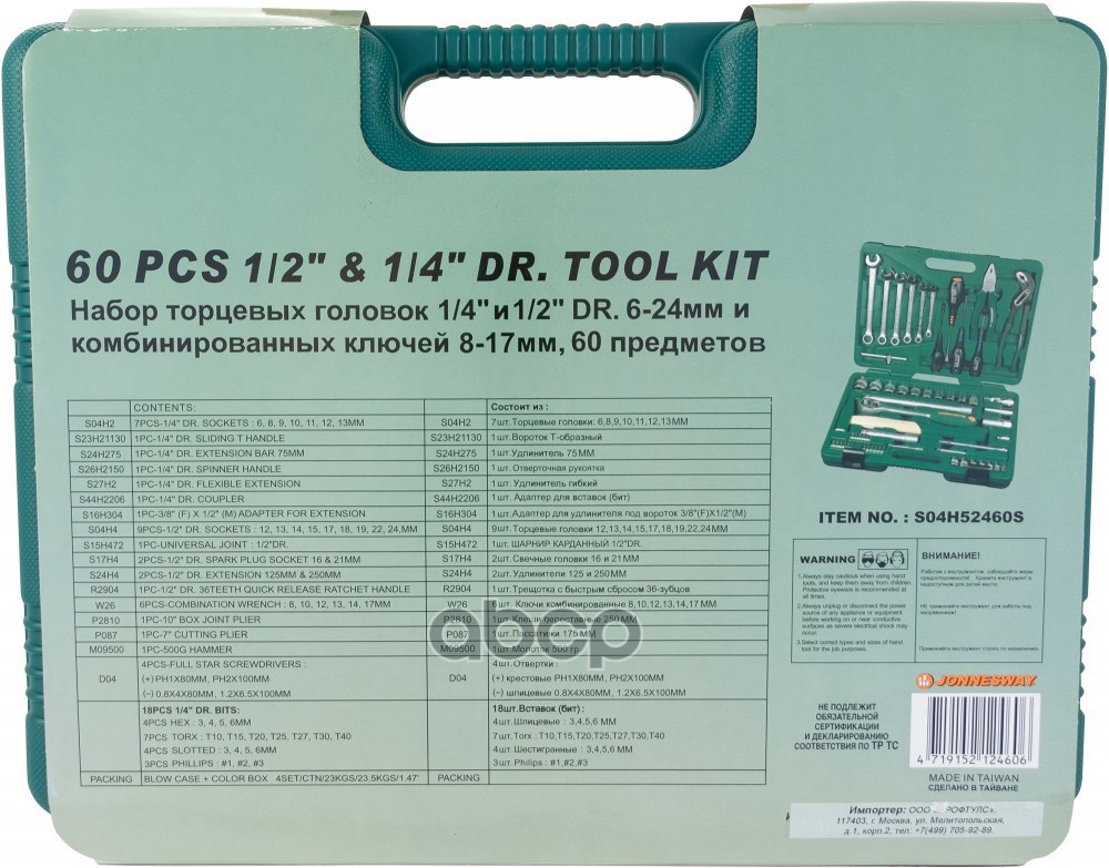 Наименование: Набор инструмента 60 пр. 1/2" 1/4" 6 гр. JW S04H52460S