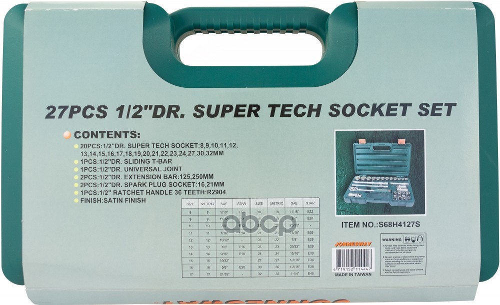 Наименование: S68H4127S Набор головок торцевых 1/2"DR Super Tech, 27 предметов