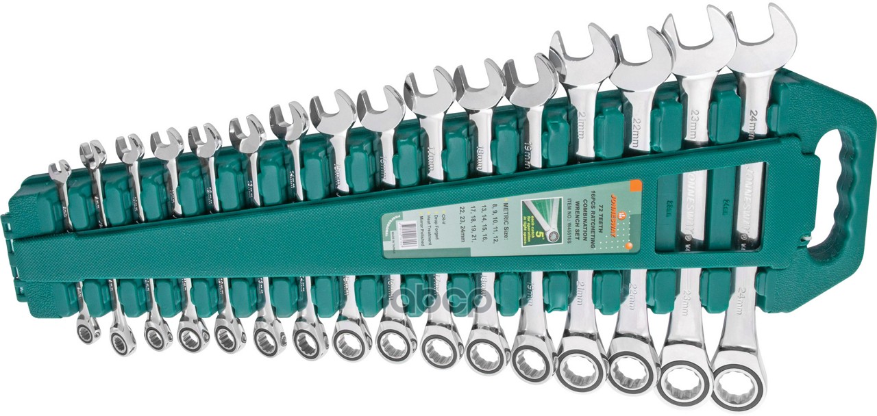 Набор ключей гаечных комбинированных трещоточных на держателе, 8-24 мм, 16 предметов