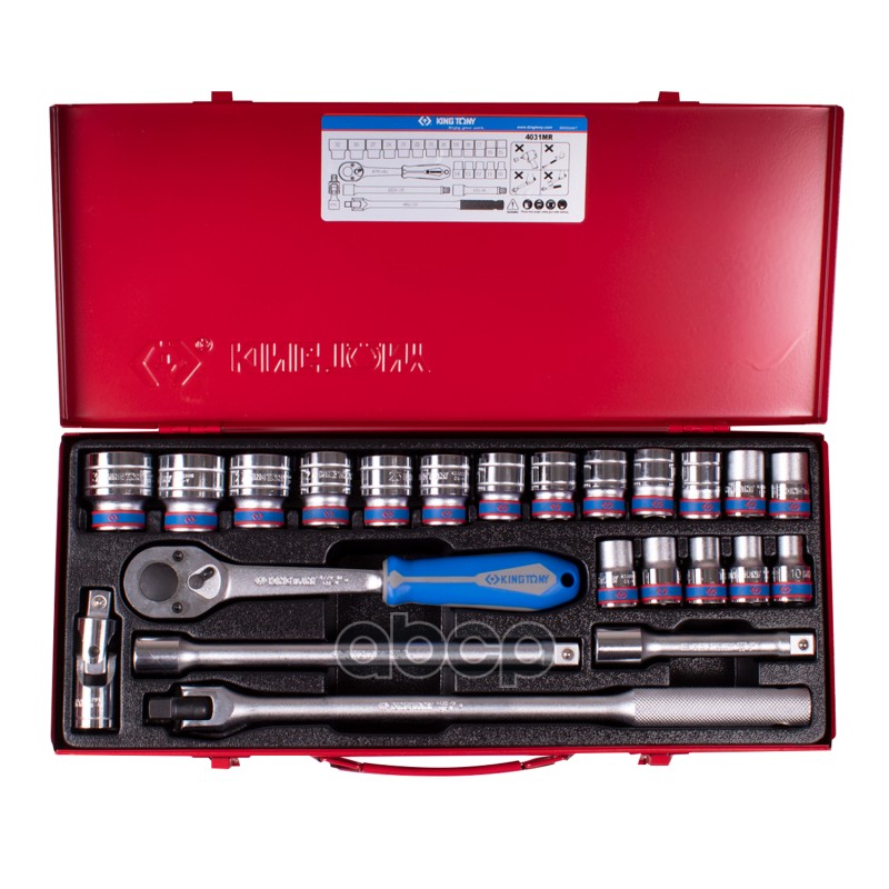 Купить запчасть 4031MR KING TONY Набор торцевых головок с принадлежностями 12, двенадцатигранные, 10-32 мм, 23 предмета с доставкой по России.