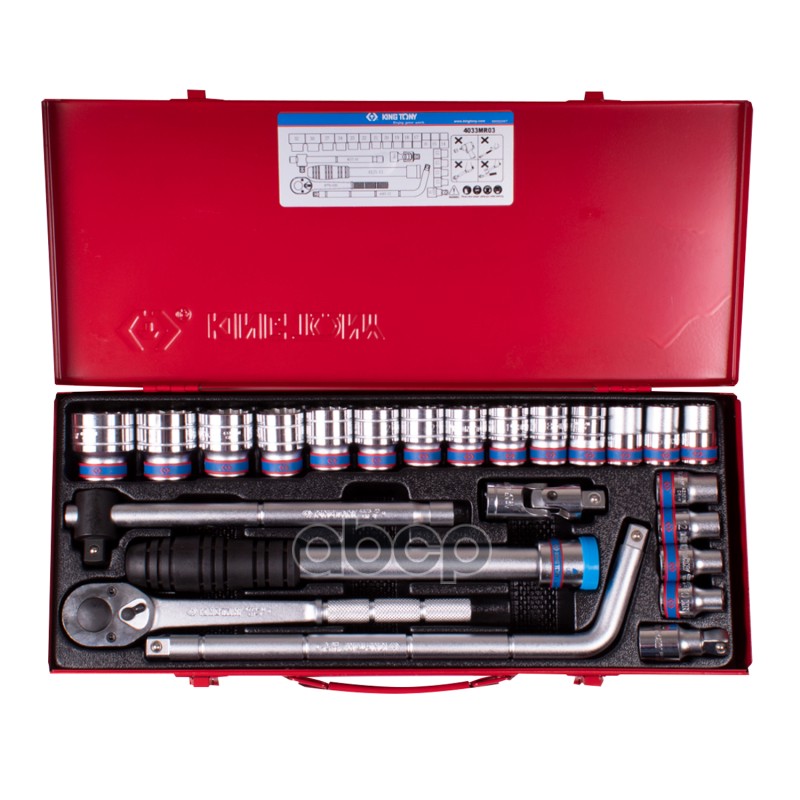 Купить запчасть 4033MR03 KING TONY Набор торцевых головок с принадлежностями 12, двенадцатигранные, 10-32 мм, 24 предмета с доставкой в Эль-Монте.
