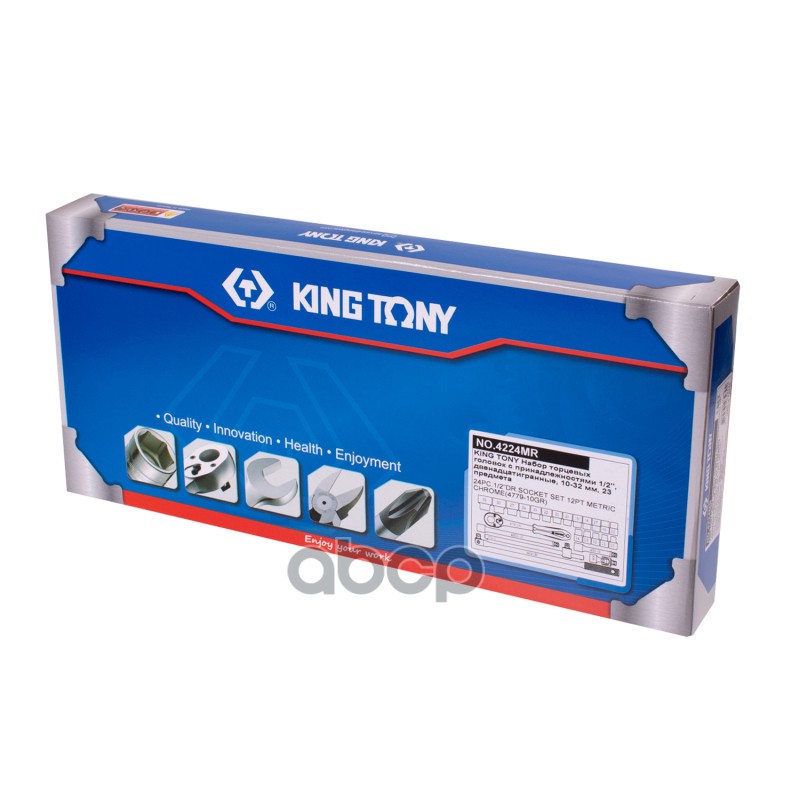 Наименование: Набор торцевых головок с принадлежностями 1/2", двенадцатигранные, 10-32 мм, 24 предмета KING TONY 4224MR