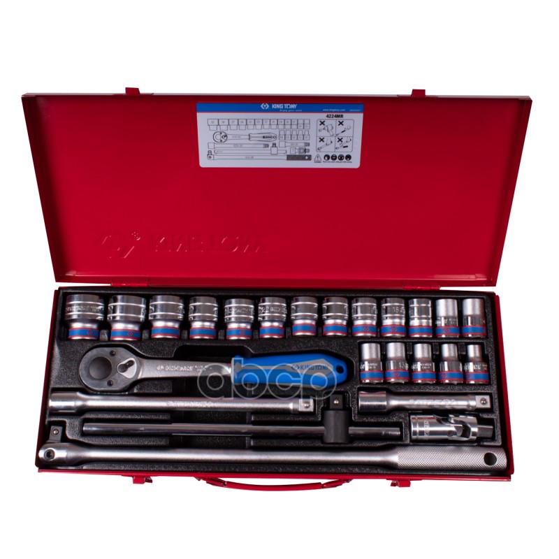 Купить запчасть 4224MR Набор торцевых головок с принадлежностями 1/2", двенадцатигранные, 10-32 мм, 24 предмета KING TONY 4224MR с доставкой в Эль-Монте.