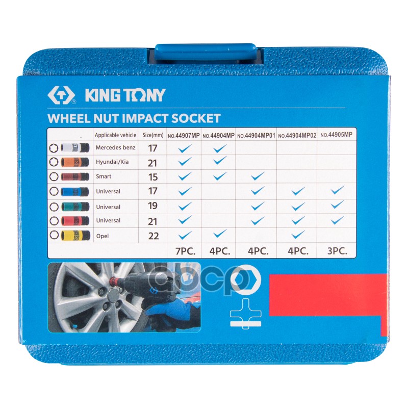 KING TONY 44905MP Бренд: KING TONY, артикул: 44905MP, Набор ударных глубоких торцевых головок 1/2", шестигранные, 17, 19, 21 мм KING TONY 44905MP.