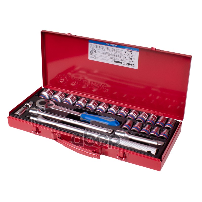 Набор торцевых головок с принадлежностями 1/2", двенадцатигранные, 3/8-1&1/4", 23 предмета KING TONY 4031SR
