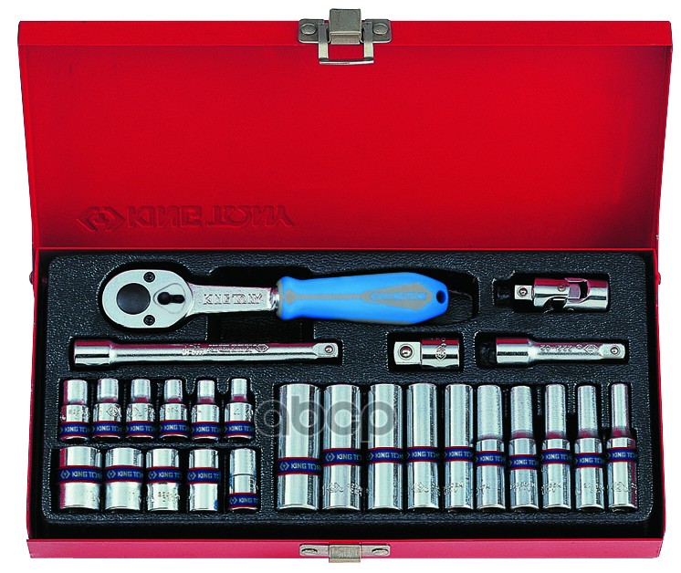 Набор торцевых головок с принадлежностями 1/4", шестигранные, 4-14 мм, 34 предмета KING TONY 2534MRV