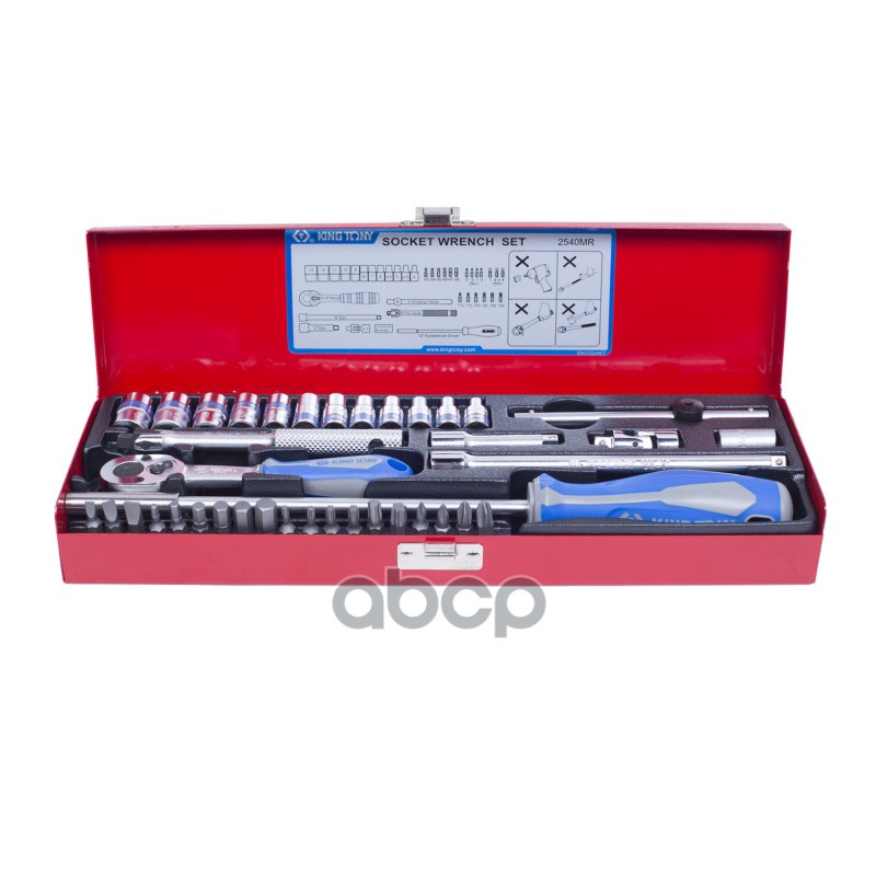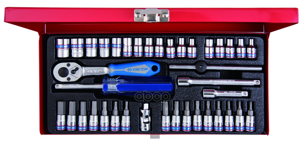 Набор торцевых головок с принадлежностями 1/4", шестигранные, 4-13 мм, 39 предметов KING TONY 2539MR