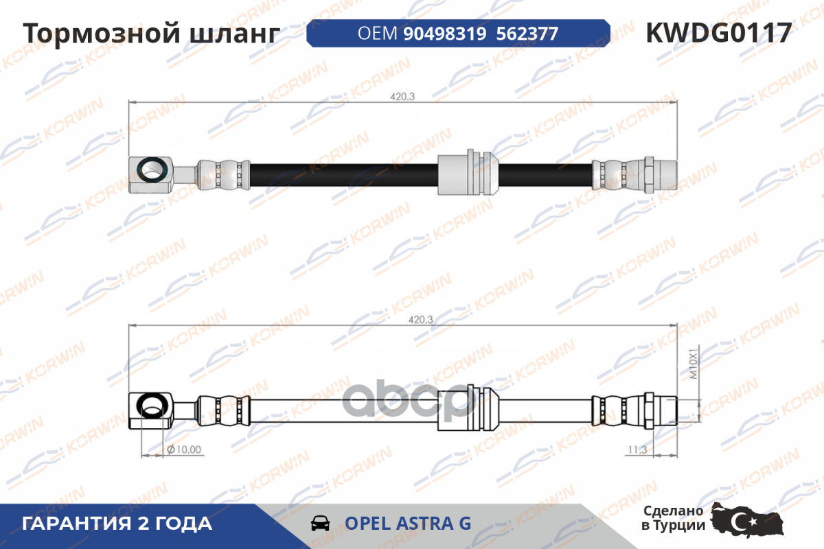 Купить запчасть KWDG0117 Шланг тормозной перед. Opel Astra F/G с доставкой в Эль-Монте.