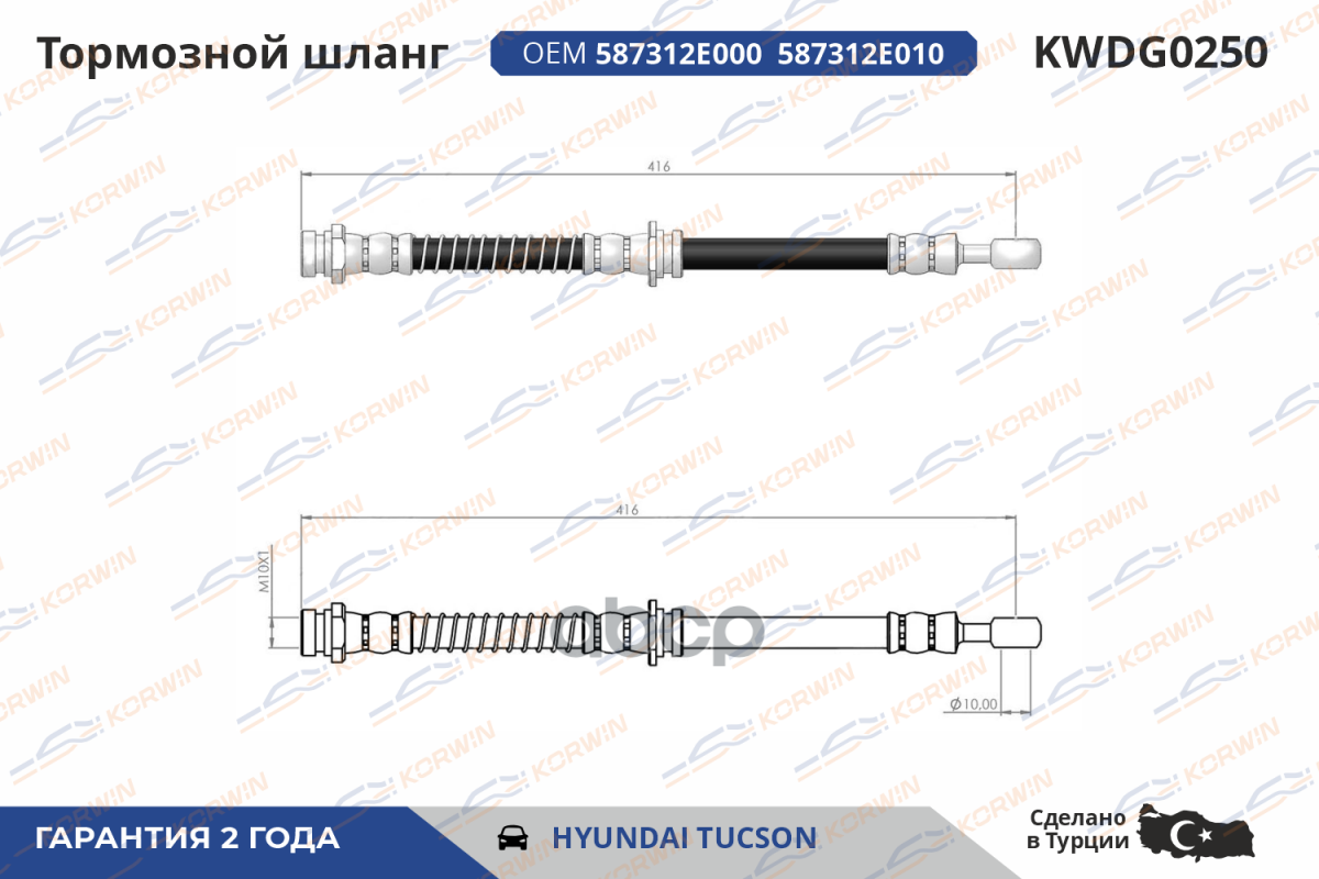 Купить запчасть KWDG0250 Шланг тормозной перед. лев. Hyundai Tucson / Kia Sportage 2004-10 с доставкой в Эль-Монте.