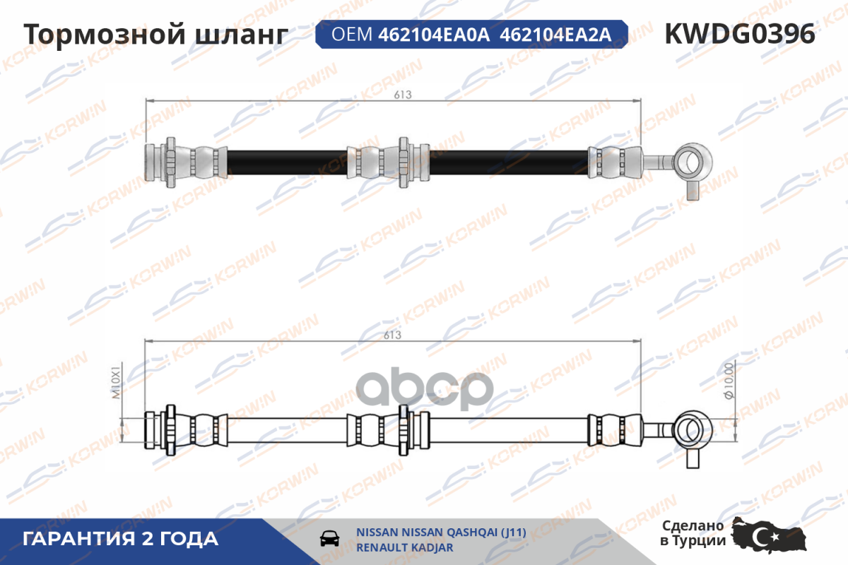 Купить запчасть KWDG0396 Шланг тормозной перед. прав. Nissan Qashqai 14- с доставкой в Эль-Монте.