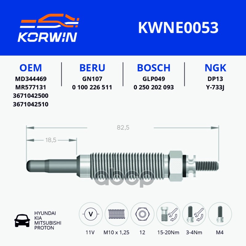 Свеча накаливания Mitsubishi L200 (96-) 2.5D пр.Турция_KORWIN MD354500 MD301950;MR577131;MD344469;