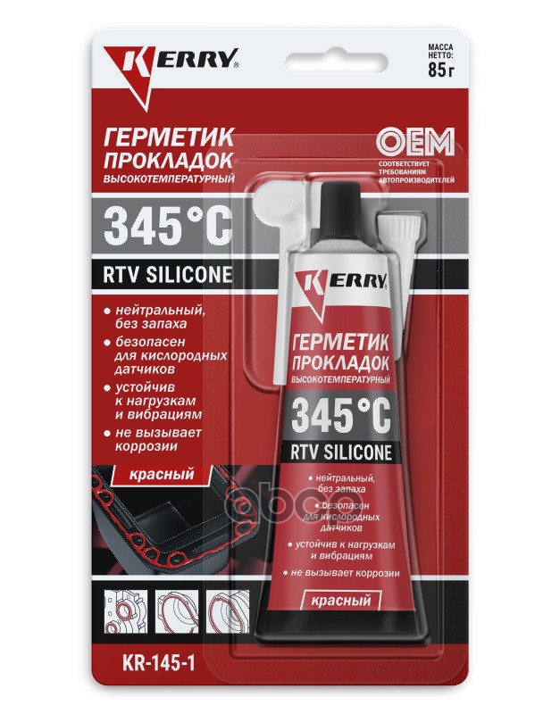 Герметик прокладка Kerry RTV Silicone высокотемпературный нейтральный красный 85 гр KR-145-1