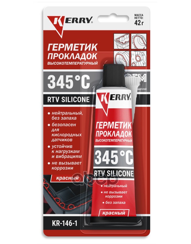 Герметик прокладка Kerry RTV Silicone высокотемпературный нейтральный красный 42 гр KR-146-1