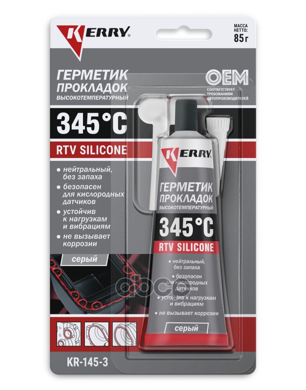 Герметик прокладка Kerry RTV Silicone высокотемпературный нейтральный серый 85 гр KR-145-3