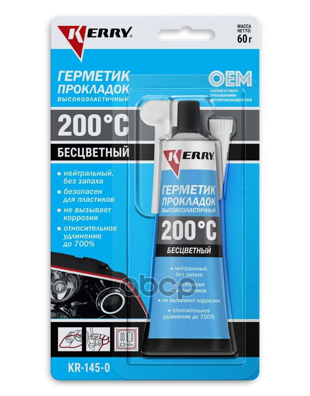 Герметик прокладка Kerry Silicone высокоэластичный нейтральный прозрачный 60 гр KR-145-0