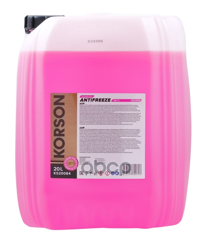 Антифриз KORSON G12 EVO розовый 5L 29743-2013 (LEC-II), 297432013(LECII), ASTM D3306, ASTM D4985GB, ASTMD3306, ASTMD4985GB, SAE J 1034, SAEJ1034, VW TL 774-C [G11], VW TL 774-D [G12], VW TL 774-F [G12+], VW TL 774-G [G12++], VW TL 774-J [G13], VW TL 774-L