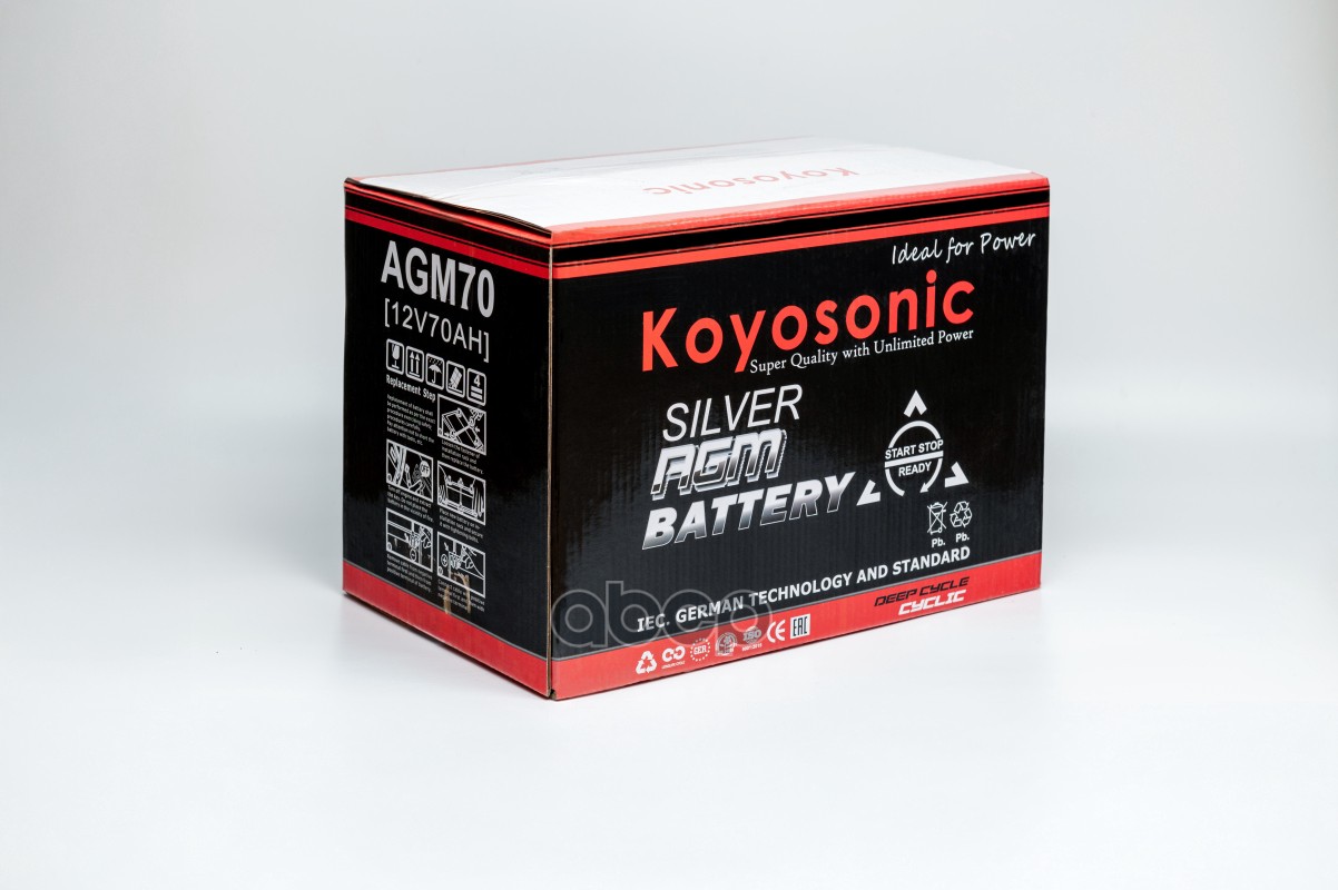 Бренд: Koyosonic, артикул: AGM70, АКБ KOYOSONIC START-STOP AGM 70АЧ L3 - 12V.
