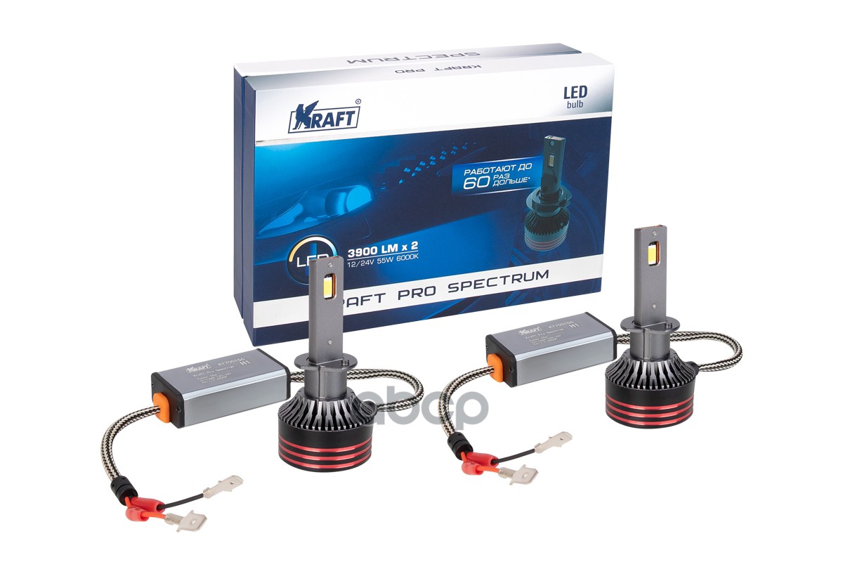 Наименование: Автолампа светодиодная KRAFT PRO SPECTRUM (2 шт. в комплекте) H1 12V/24V 55w (P14.5s), T=6000K, 3900LM