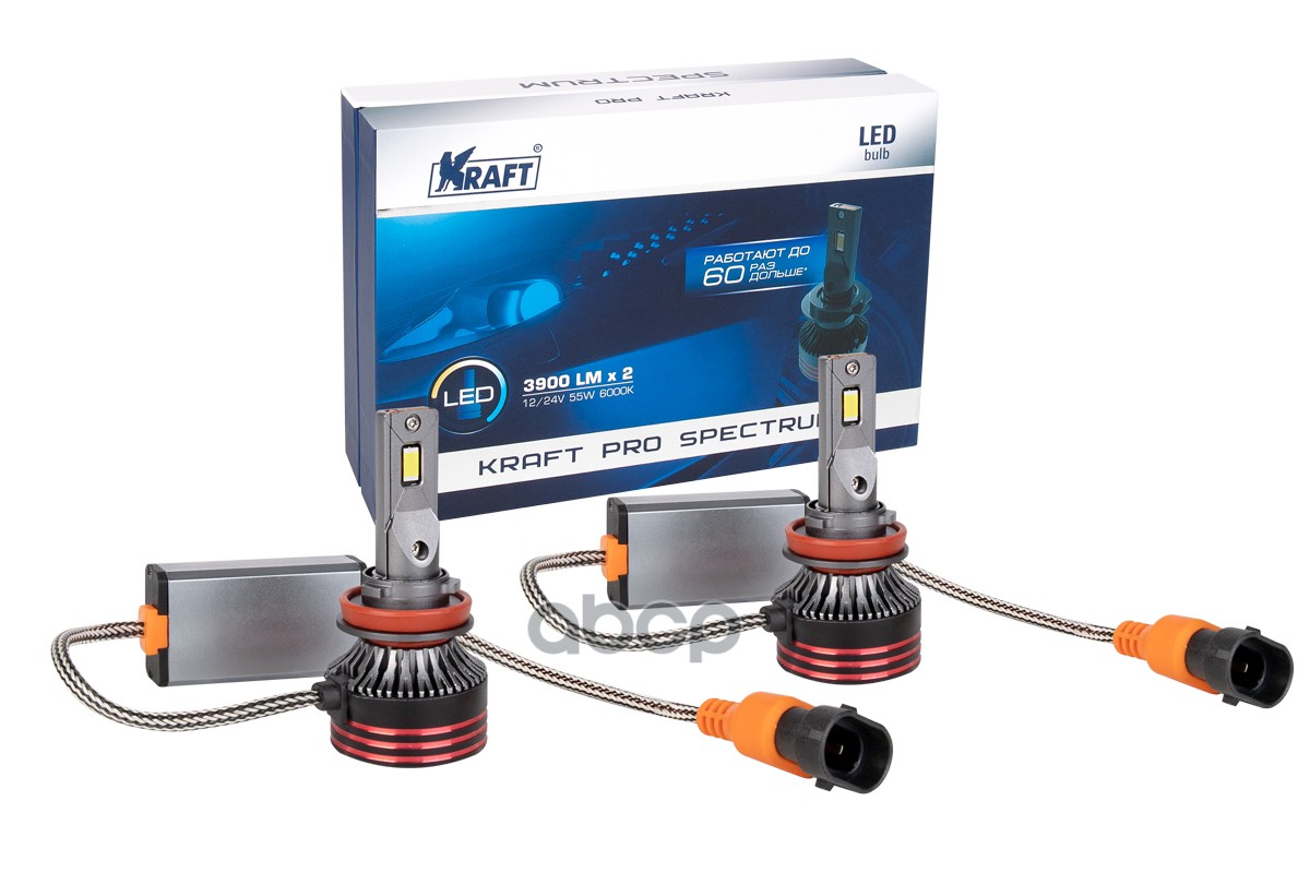 Наименование: Автолампа светодиодная KRAFT PRO SPECTRUM (2 шт. в комплекте) H11 12V/24V 55W (PGJ19-2), T=6000K, 3900LM
