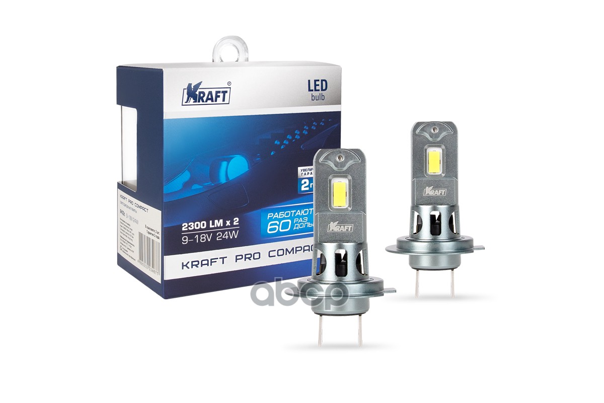 Наименование: Автолампа светодиодная KRAFT PRO COMPACT (2 шт. в комплекте) H7 9-18V 24W (PX26d), T=6000K, 2300LM