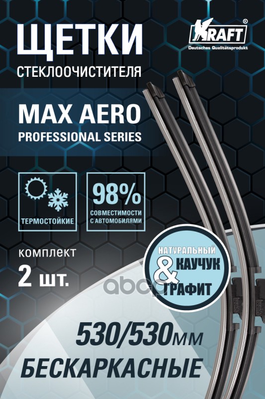 Бренд: Kraft, артикул: KT830899, К-т бескаркасных щеток стеклоочистителя 530/530 ММ, 10 адаптеров.