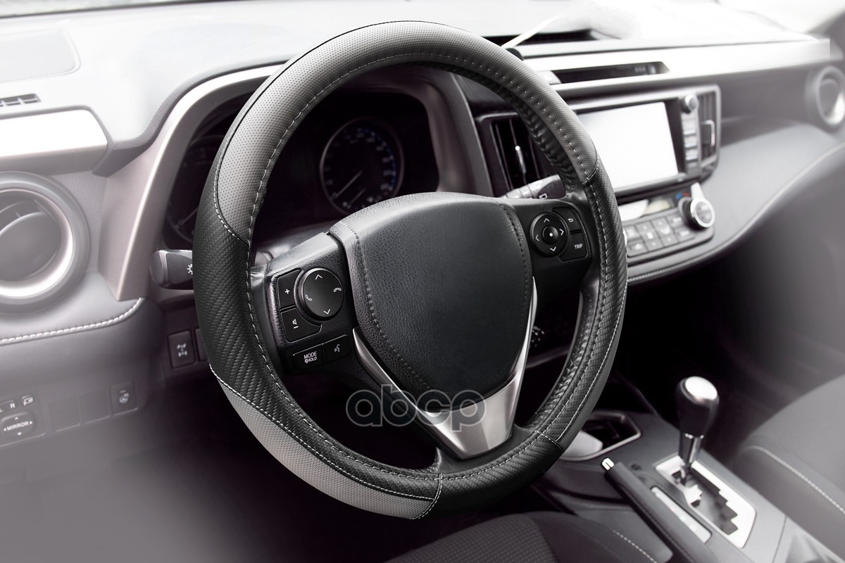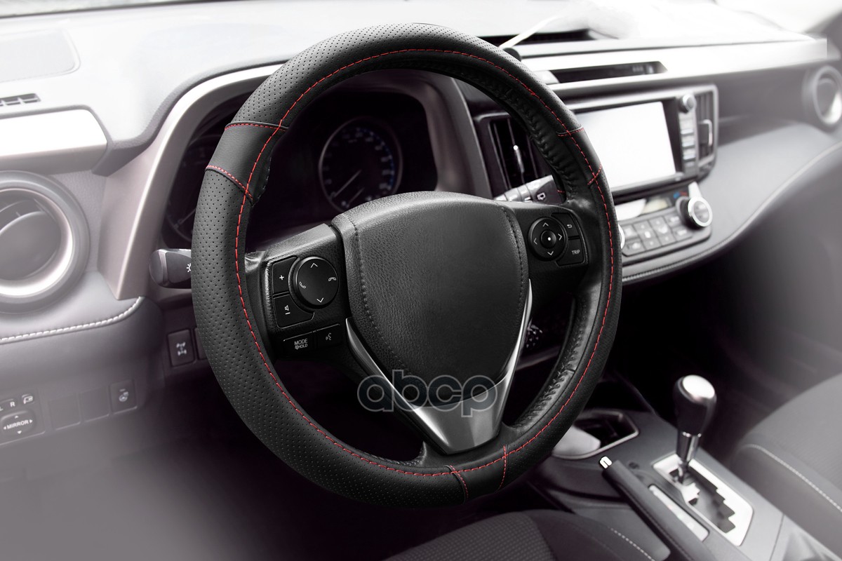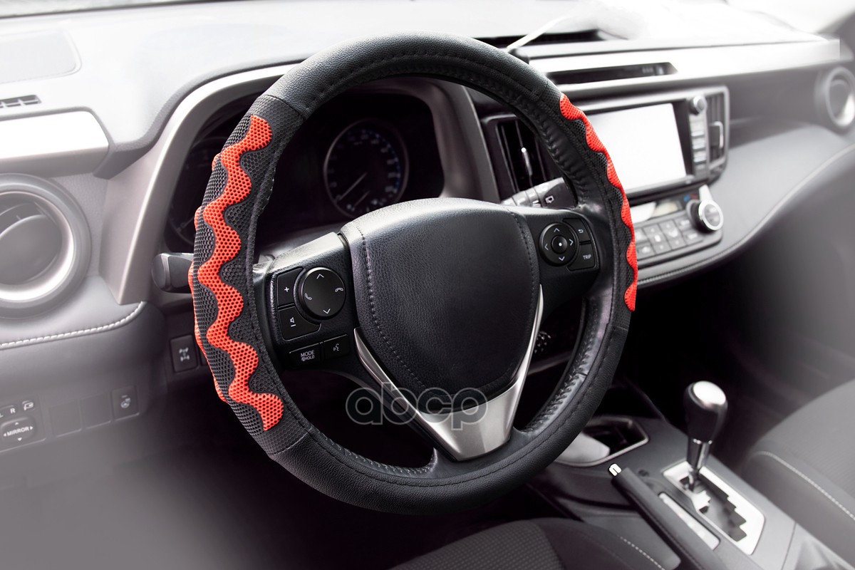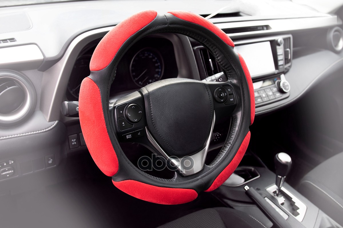 Оплетка рулевого колеса 6 спонжей эко-кожа перфорированная + алькантара, черно-красная, диаметр 37