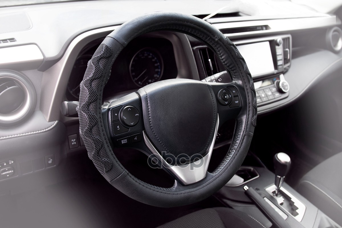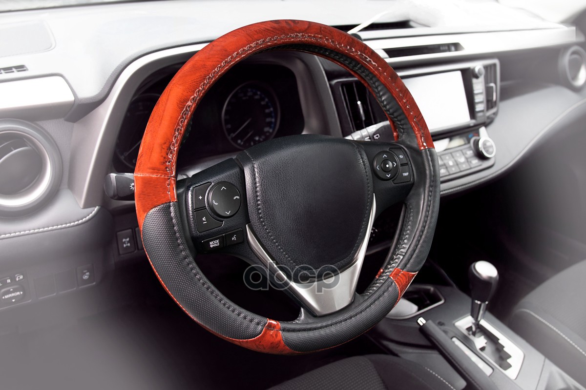 Оплетка на руль, размер "M", 37-39 см Экокожа гладкая виниловая с перфорированными вставками, "Дерево"/ вставки Черные