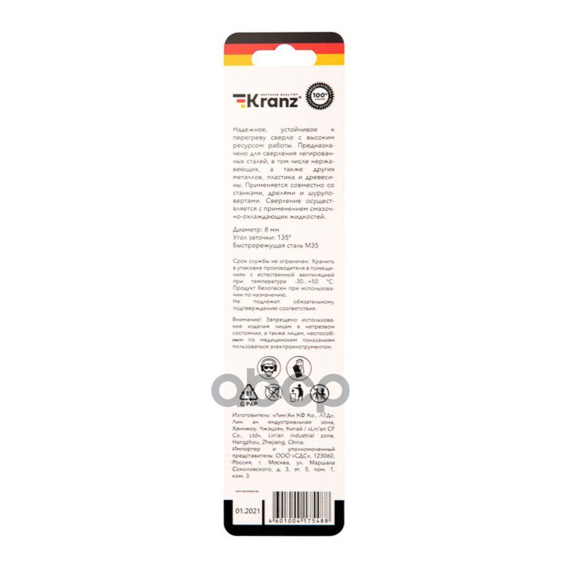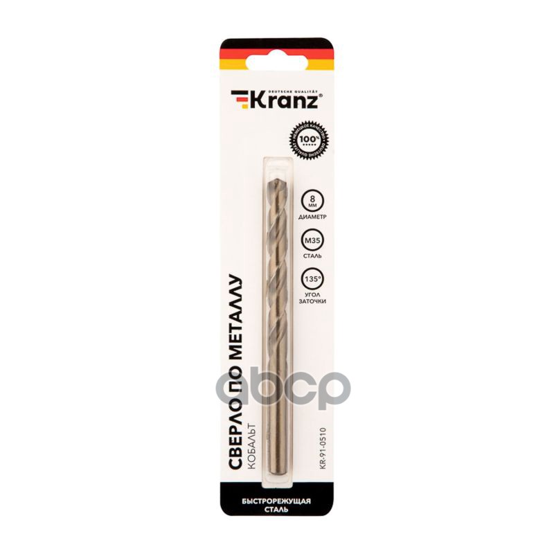 Купить запчасть KR910510 Сверло по металлу Кобальт 8х117х75 мм HSS DIN 338 KRANZ с доставкой по России.