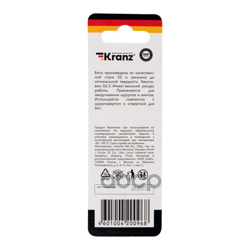 Наименование: Бита вставка PH2х90мм Kranz для шуруповерта KRANZ