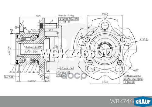 Купить запчасть WBK7466DU Ступица колеса с подшипником в сборе и монтажный к с доставкой в Эль-Монте.