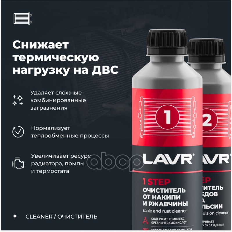 Бренд: LAVR, артикул: LN1106, Набор Полная очистка системы охлаждения в 2 этапа, 310 / 310 мл.
