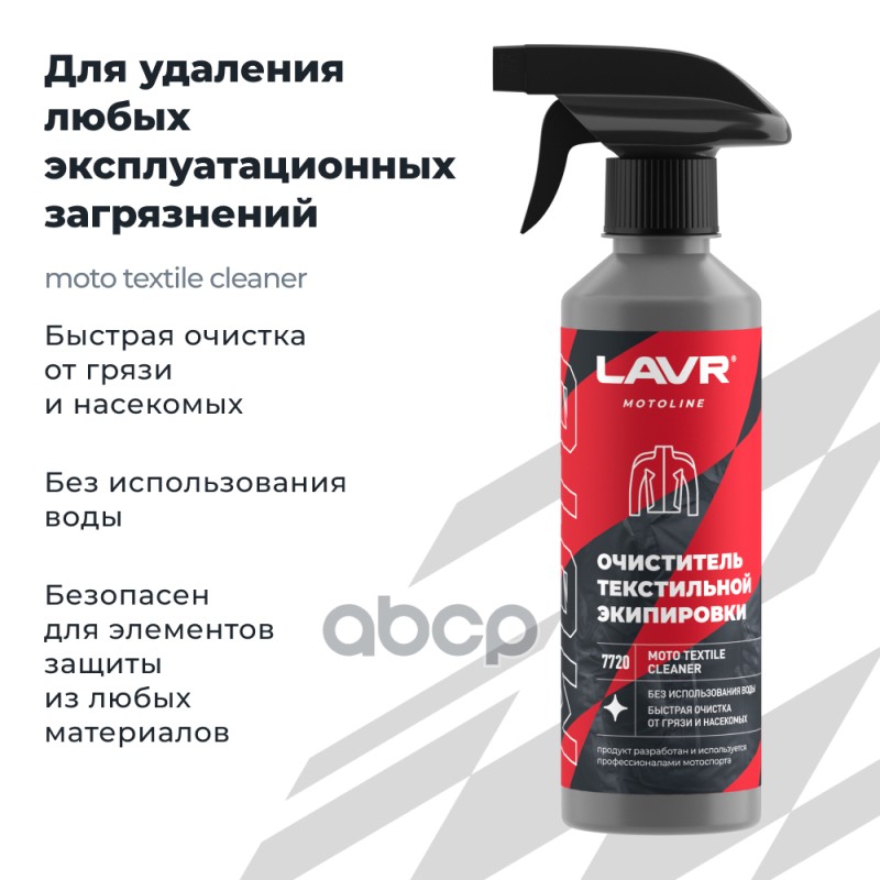 Наименование: Очиститель тексительной экипировки Lavr MOTO 310 мл Ln7720
