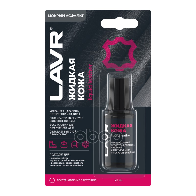 Жидкая кожа Мокрый асфальт, 20 мл Универсальный спрей-очиститель для эффективной и бережной очистки различных поверхностей