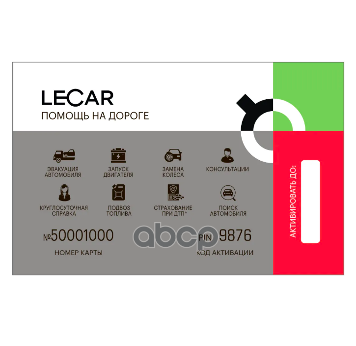 Карта помощь на дороге "LECAR" (доступны 5 услуг) + Страхование при ДТП (номинал 3)