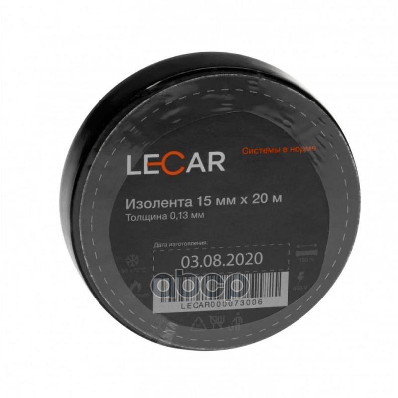 Изолента LECAR 15 мм 20 м черная Преимущества изоленты ПВХВыдерживает ток высокого напряжения до 600 В – обеспечивает безопасность работы приборов.Имеет хорошую клейкость – отлично держится на пластике, металле, плитке, стекле, картоне и других гладких