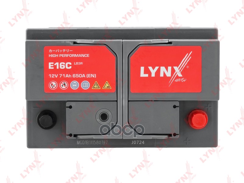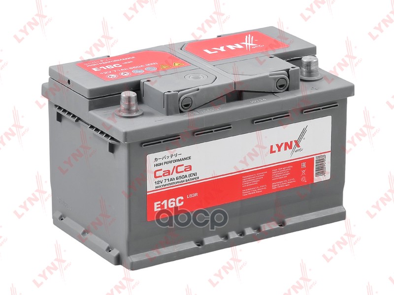 Бренд: LYNXauto, артикул: E16C, Аккумулятор LB3R, 71 Ah, 650 A, обратная, 275X174X174 ALFA ROMEO/AUDI/BMW/CHEVROLET/CHRYSLER/FIAT/FORD/FORD USA/HONDA/HUMMER/LANCIA/LDV/MAZDA/MERCEDES-BENZ/MG/NISSAN/OPEL/RENAULT/ROVER/SEAT/SUZUKI/VOLVO/VW E16;1712276;2375059;0 092 S30 070;0 092 S40 070;0.
