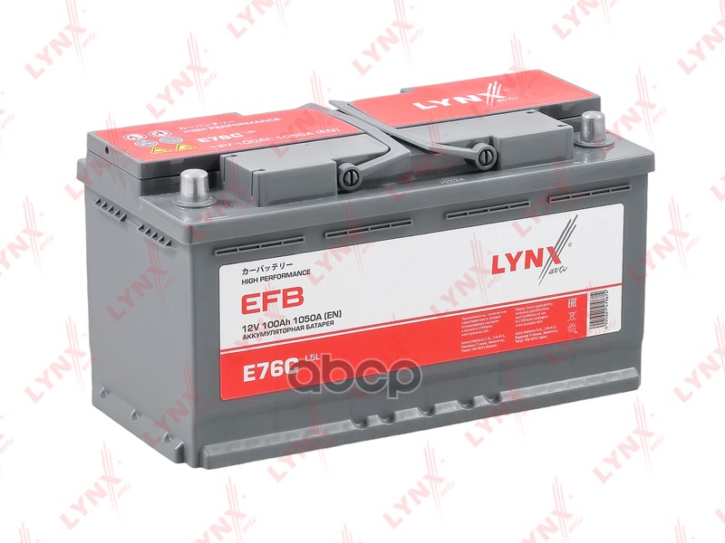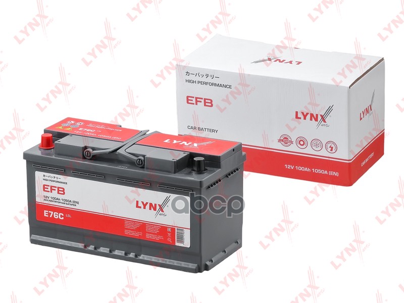 Бренд: LYNXauto, артикул: E76C, Аккумулятор EFB 100 Ah, 1050 A, прямая, 353x175x190.