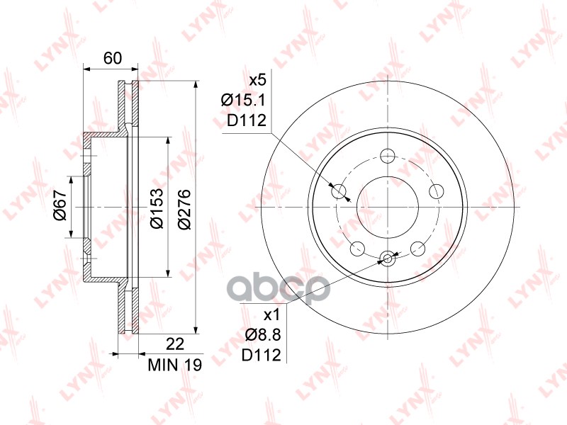 Диск тормозной вентилируемый (276x22) | перед | Mercedes-Benz Sprinter 2.2D-3.5D 95-06 BN-1079