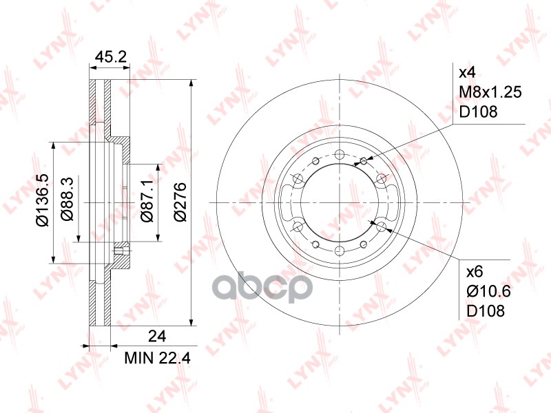 Диск тормозной вентилируемый (276x24) | перед | Mitsubishi Pajero II 2.4-3.5 90-00 / III 2.5D 00-06 / Pajero Sport(K90) 2.5D-3.2D 98- / L200 2.4-3.0 96-07 BN-1088