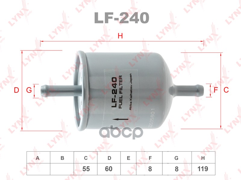 Фильтр топливный подходит для NISSAN Primera 1.8-2.0 90-94/President 4.5 90-03/Maxima 3.0 94, INFINITI Q45 4.5 97 LF-240