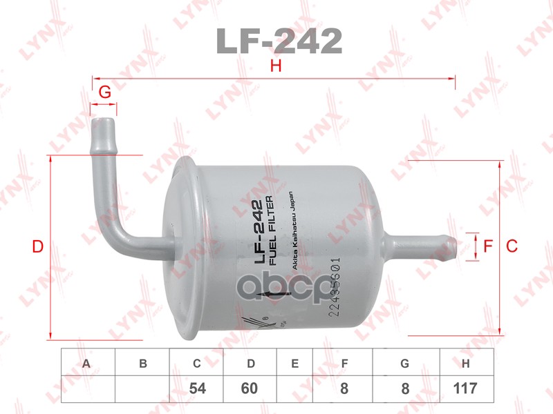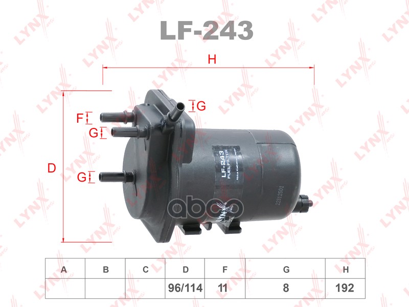 Фильтр топливный NISSAN AVENIR PNW11,PW11, PULSAR EN14,EN15,FNN15,HN14,HN15,JN15,RNN14,ADVAN/WAGON WFGY10,WFN10,PRIMERA WAGON WHP11,WFNY10,WFY10,CREW HK30,THK30,YHK30,SUNNY EB13,EB14,FNB14,HB13,HNB13,SUNNY LUCINO EN15,FB14,FNN15,HB14,JB LF-242