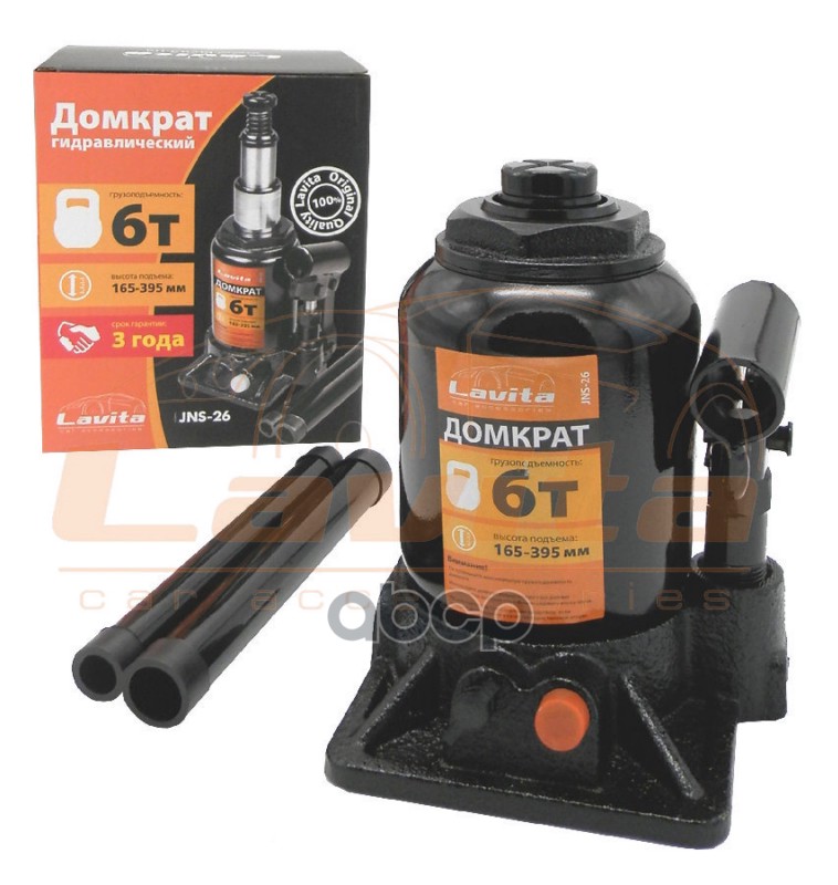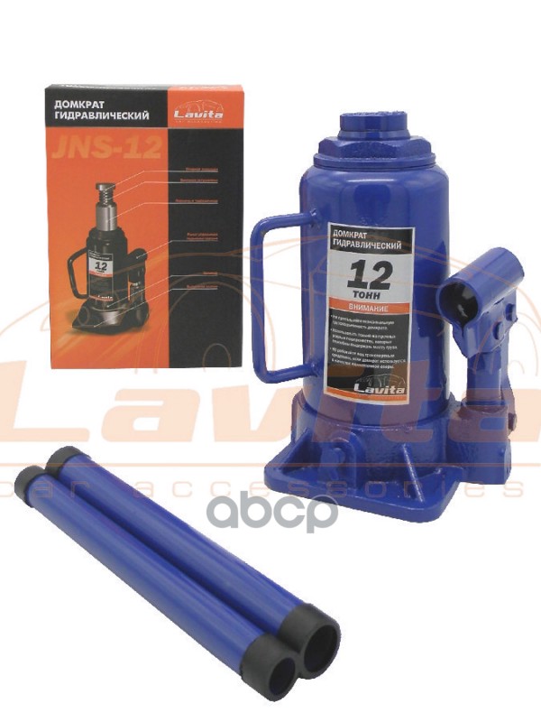 Домкрат 12 тонн, гидравлический. (210-400мм) JNS-12 LAVITA Применяемость: 12Т (210-400ММ) КАРТОН. УПАК., Домкрат бутылочный гидравл.