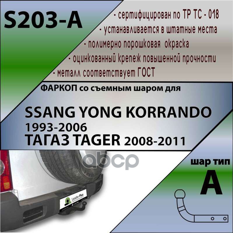 Купить запчасть S203A Фаркоп Tagaz Tager 2008-2011, SsangYong Korando 1997-2003 с условно-съемным креп с доставкой в Эль-Монте.